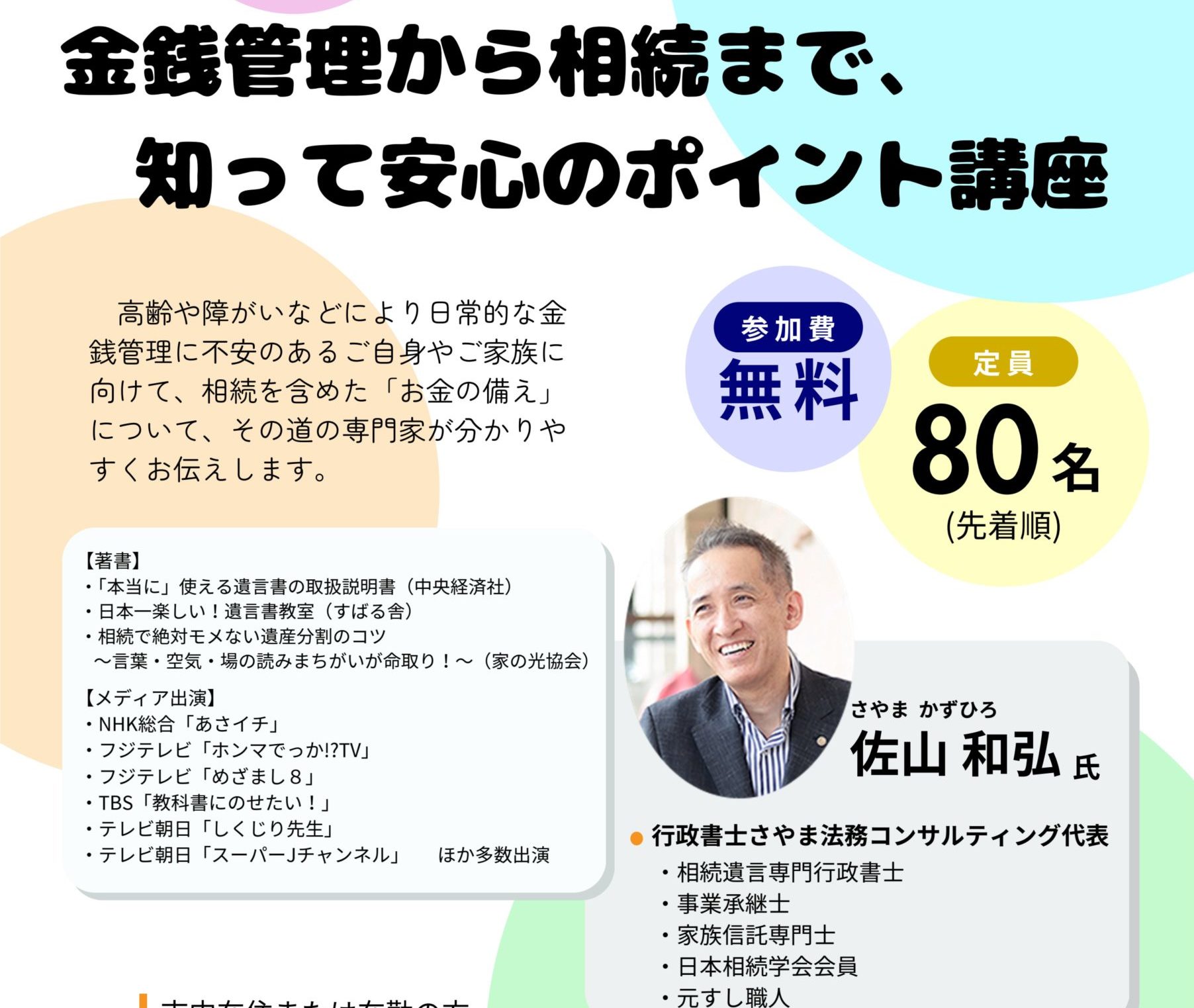 2026.01.26「金銭管理から相続まで、知って安心のポイント講座」を開催します