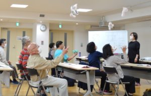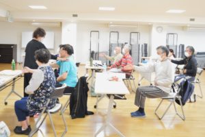 初回の5/15(木)は、本会職員より“社会参加が介護予防につながること”についてお伝えしたのち、新潟医学協会事業社の健康運動指導士・藤口 理恵子 氏を講師に迎え、言葉が脳に与える影響や筋肉の働きについて学びました。座学だけでなく実際の体験も取り入れ、ちょっとした運動でも体の動かしやすさが変わることを実感していただきました。