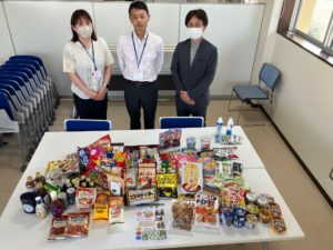 今回の寄付は、昨冬に引き続き4回目となります。両施設では、地域貢献活動の一環として、職員やその家族に食料品の提供を呼びかけ、8月1日から8月15日までの間に集まった乾麺や調味料、レトルト食品、お菓子などを本会が受け取らせていただきました。