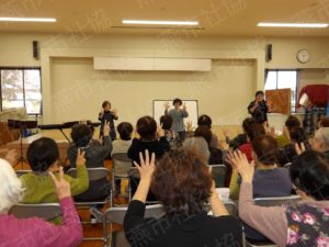 今回は、講師に関崎智弥氏、井野口敏子氏、鈴木真理子氏をお迎えして、親しみのある歌に手話を取り入れて歌ったり、クイズを交えた読みかたりを行ったりするなどの脳トレに取り組みました。参加された皆さんからは、「頭と身体を使い、とてもリフレッシュできた」「とても楽しいひとときだった」等の感想をいただき好評でした。