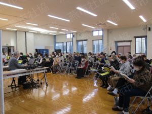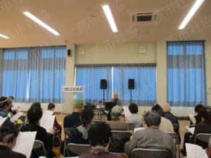 燕市老人集会センターでは、11月28日(金)に標記うたごえ喫茶を開催し、78名の皆さんから参加いただきました。 講師の永田宏行氏は、ソフトで軽妙な語り口と、澄みきった歌声で皆さんを魅了し、会場は大変な盛り上がりでした。 参加された皆さんからは、「どんなリクエスト曲にも対応してもらい、青春時代を思い出した」「みんなと一緒に歌ってとても楽しかった」等の感想をいただき好評でした。
