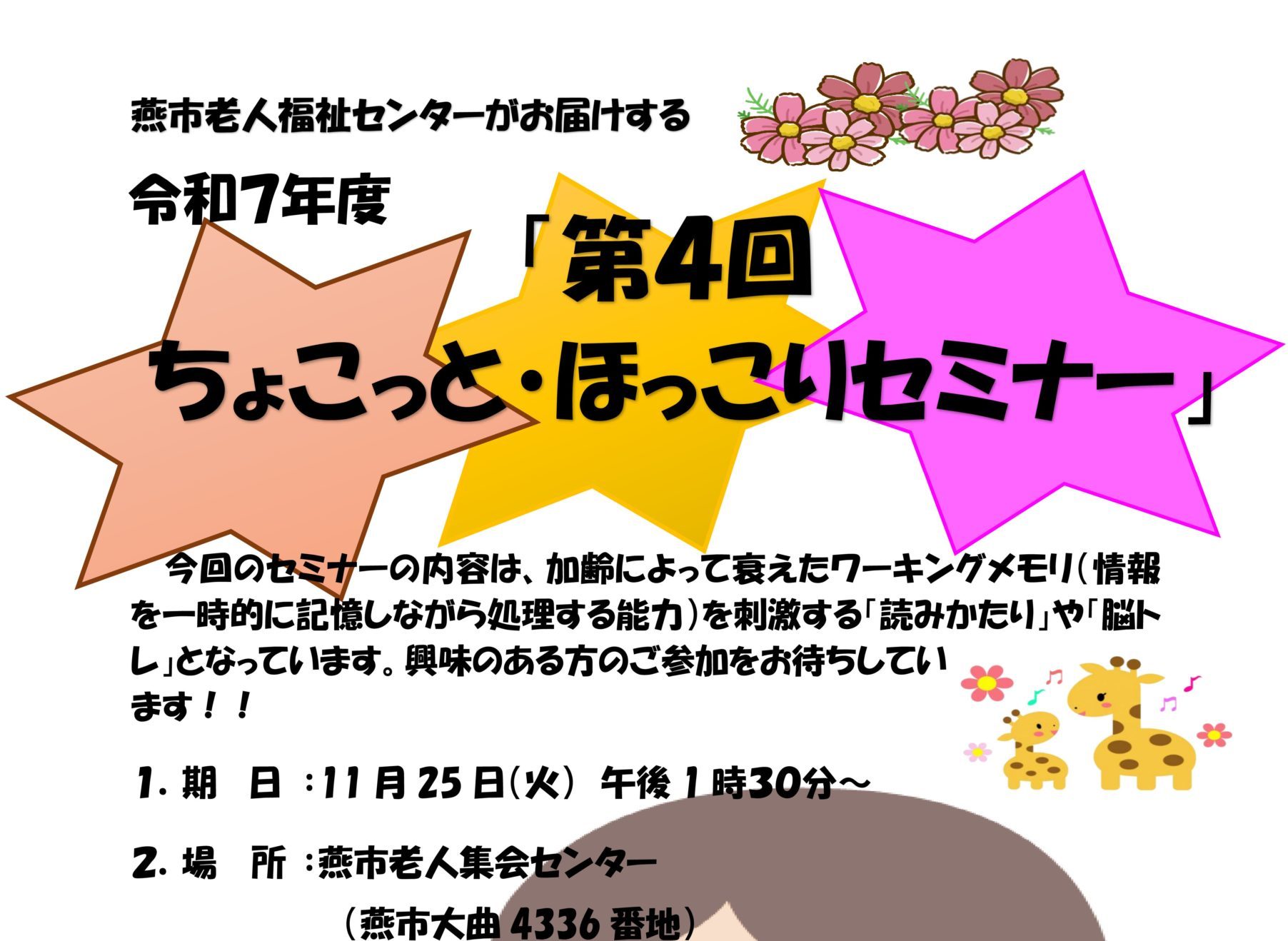 2025.10.28令和7年度 「第4回 ちょこっと・ほっこりセミナー」を開催します