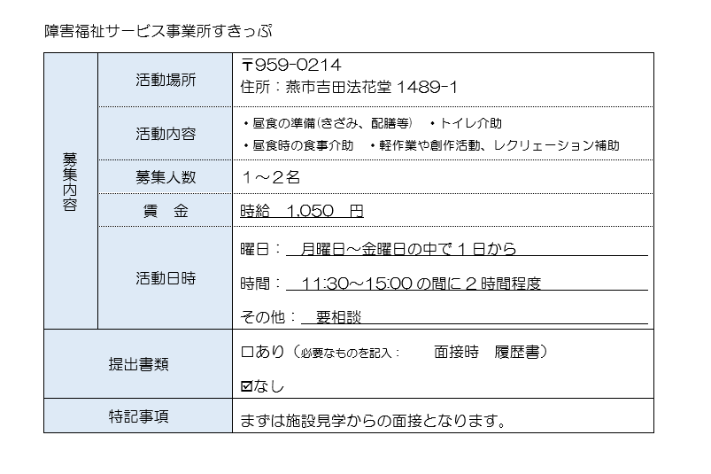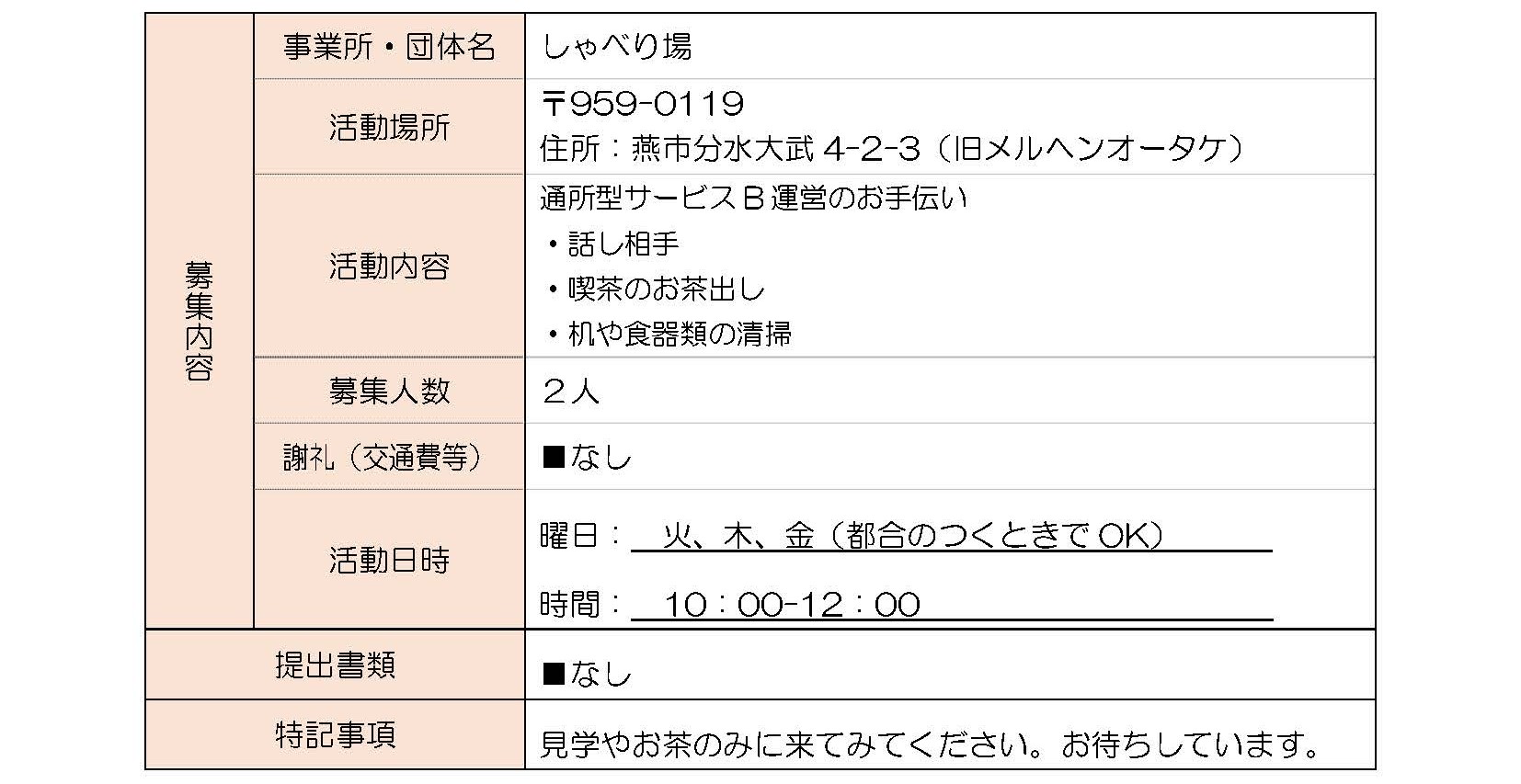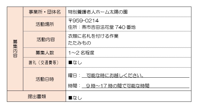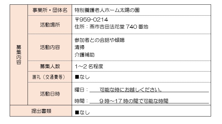 活動者のできる活動と福祉施設等の募集内容が一致した際には、福祉施設において活動についての説明を受けてください。