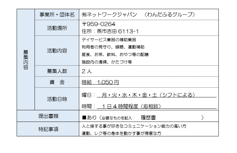 希望する情報がありましたら、シニアNEXT人材バンク事務局(TEL:0256-78-7866)までご連絡ください。